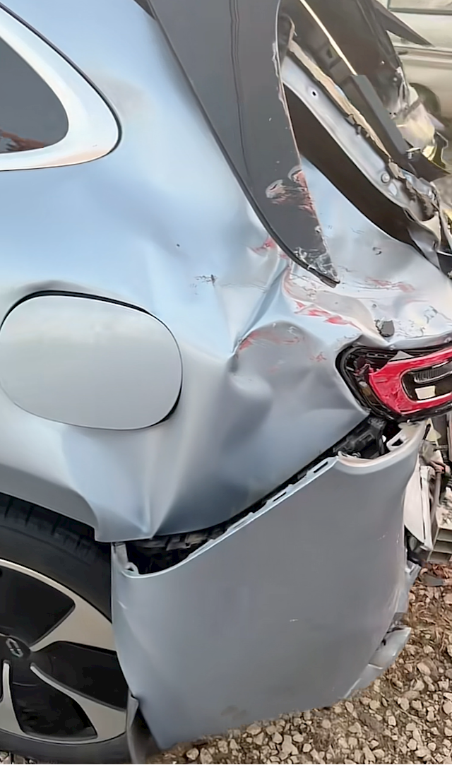 好在整体框架完整,从外边甚至看不到褶皱的地方,这也是车门能正常开闭,以及车内人员安然无恙的关键。