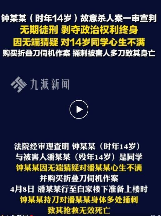 11月28日,14岁男生杀害同小区女同学案在深圳市中级人民法院一审宣判,被告人钟某某被判处无期徒刑,剥夺政治权利终身。就公众关注的未成年人恶性犯罪如何量刑、如何预防等方面的问题,记者采访法学专家和律师,深入解读案件宣判的司法考量和司法效果。