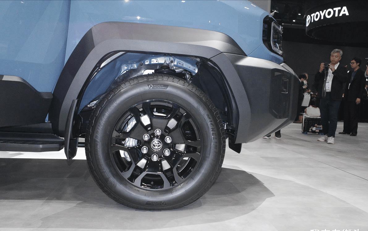 从实拍来看,Land Cruiser FJ保留了丰田硬派越野车一贯的“块头感”与“方正感”:粗犷的前脸格栅配上大尺寸TOYOTA字母标识,岩石风格包围连贯至车身腰线,营造出一副“我可以进山也能进市区”的氛围。车身比例虽然偏向紧凑,但底盘似乎保持较高离地高度,轮眉、轮胎尺寸与前后护板都暗示其具备越野潜力。