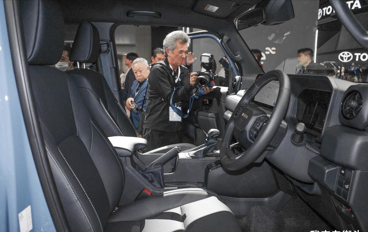 在TMS 2025实拍车内,Land Cruiser FJ的内饰延续“造型硬派、用料扎实”的设计理念。仪表台线条平直、材质结合粗纹塑料与金属饰件,看得出丰田在保留越野车“可污损可易擦”属性上有下工夫。中控屏虽尺寸尚未官方确认,但从现场看具有相当辨识度,搭配实体旋钮、换挡杆以及可能具备越野模式的按钮布局。