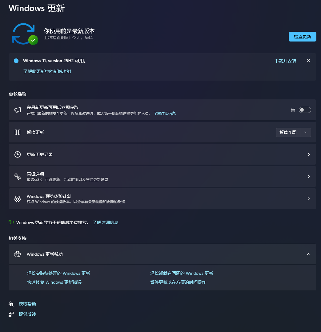 微软已在其官方文档中更新了相关信息:“即日起,Windows 11 版本 25H2(也称为 Windows 11 2025 更新)已向所有符合条件的 Windows 11 设备开放,前提是用户已启用‘在最新更新可用后立即获取’设置。”微软在一份文档中指出。